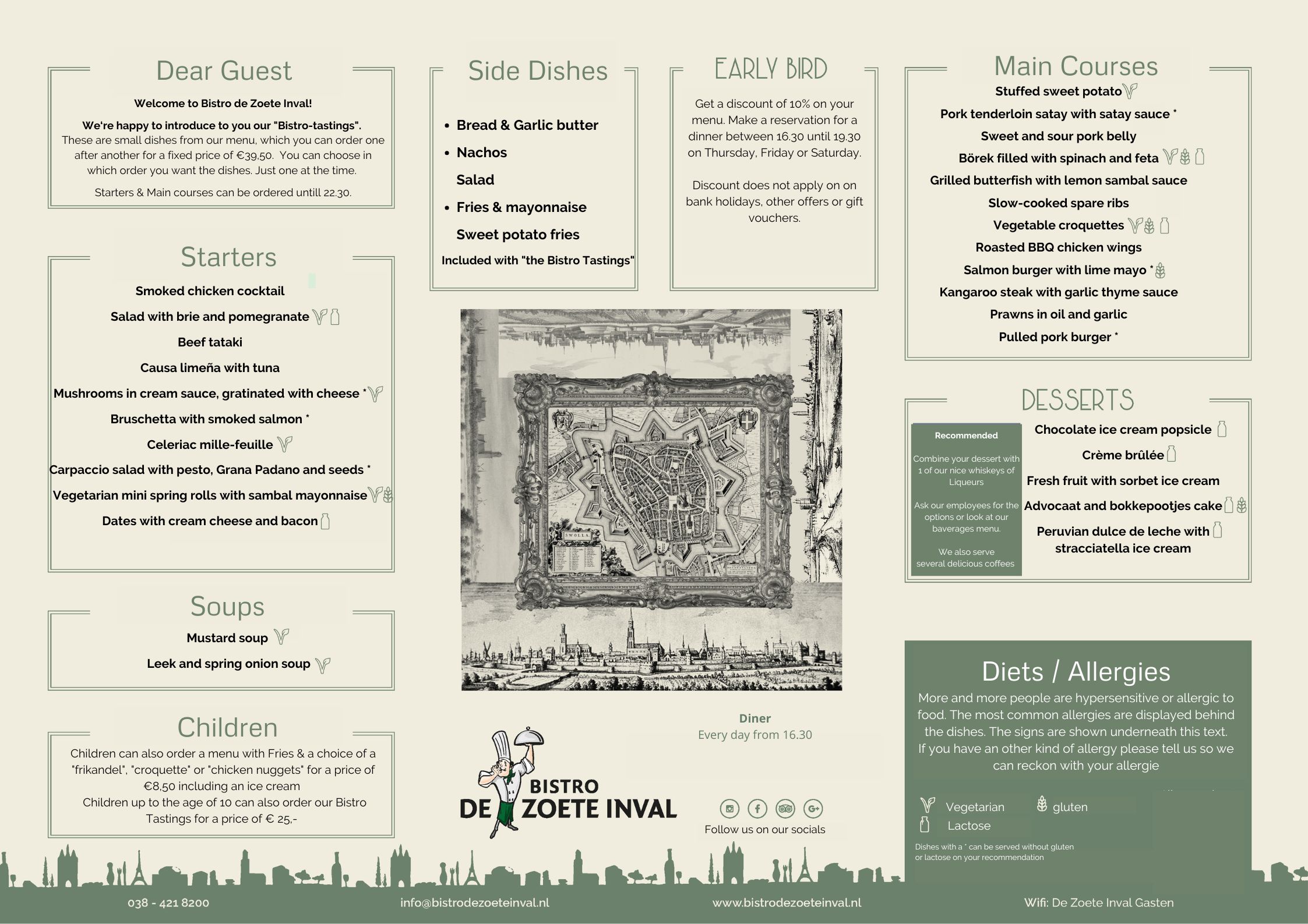 Onze menukaart wisselt 5 keer per jaar. Hieronder vindt u onze actuele menukaart miv 16-03-2026.