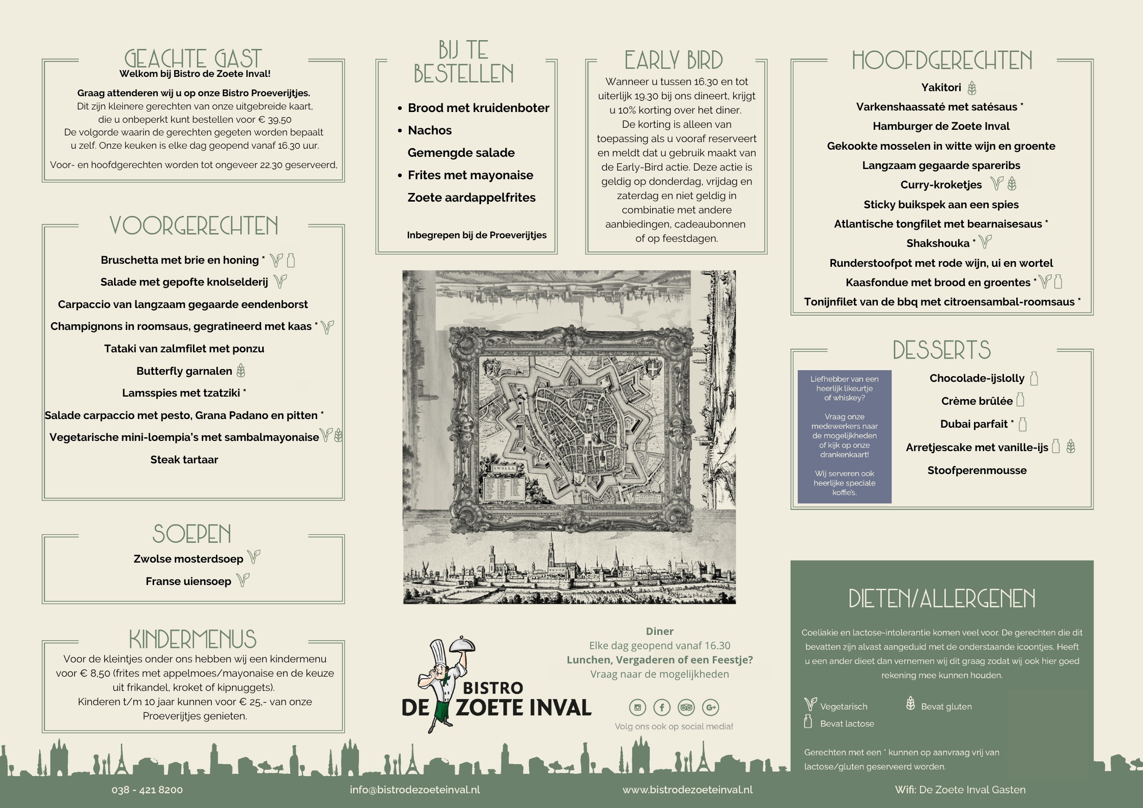 Onze menukaart wisselt 5 keer per jaar. Hieronder vindt u onze actuele menukaart miv 18-06-2025.